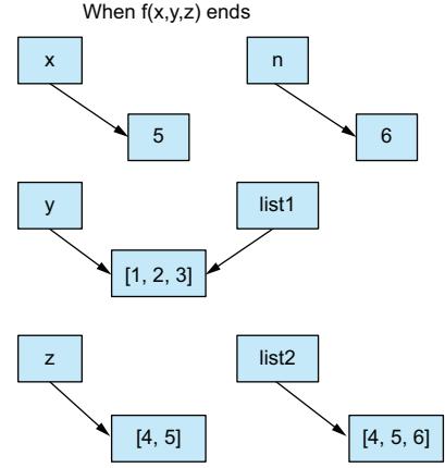 If you’re thinking of variables as containers, this result makes no sense. How could changing the contents of one container simultaneously change the other two? However, if variables are just labels referring to objects, it makes sense that changing the object that all three labels refer to would be reflected everywhere.