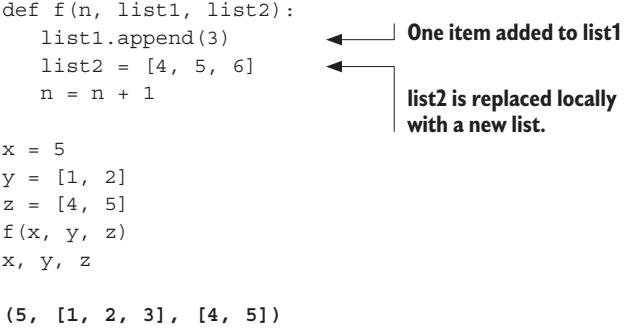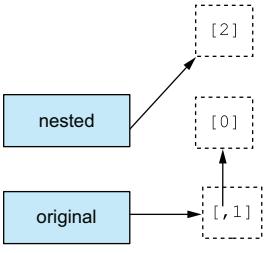 Because the objects they refer to can’t change, the behavior of the variables in this case is consistent with either explanation. In fact, in this case, after the third line, a, b, and c all refer to the same unchangeable integer object with the value 1. The next line, b = 5, makes b refer to the integer object 5 but doesn’t change the references of a or c.