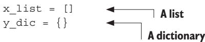 In Python, unlike in many other computer languages, neither a variable type declaration nor an end-of-line delimiter (like a ;) is necessary. The line is ended by the end of the line. Variables are created automatically when they’re first assigned.