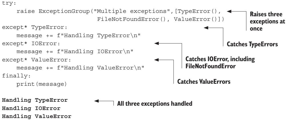 - By using try, except, else, and finally blocks, and by selecting and even creating the types of exceptions caught, you can have very fine-grained control over how exceptions are handled and ignored.
