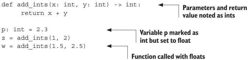 main()This looks convincing but is not quite right. Handling potential file I/O errors makes perfect sense and is correctly implemented. It also makes some sense to ensure that the word list is iterable, although I would argue that it’s unnecessarily paranoid. It’s true that if the words parameter is not iterable, the code will fail, but lists, tuples, files, etc. are all iterable by definition, so in practice the likelihood that words will not be iterable is so tiny that it would make more sense to leave that condition unhandled.